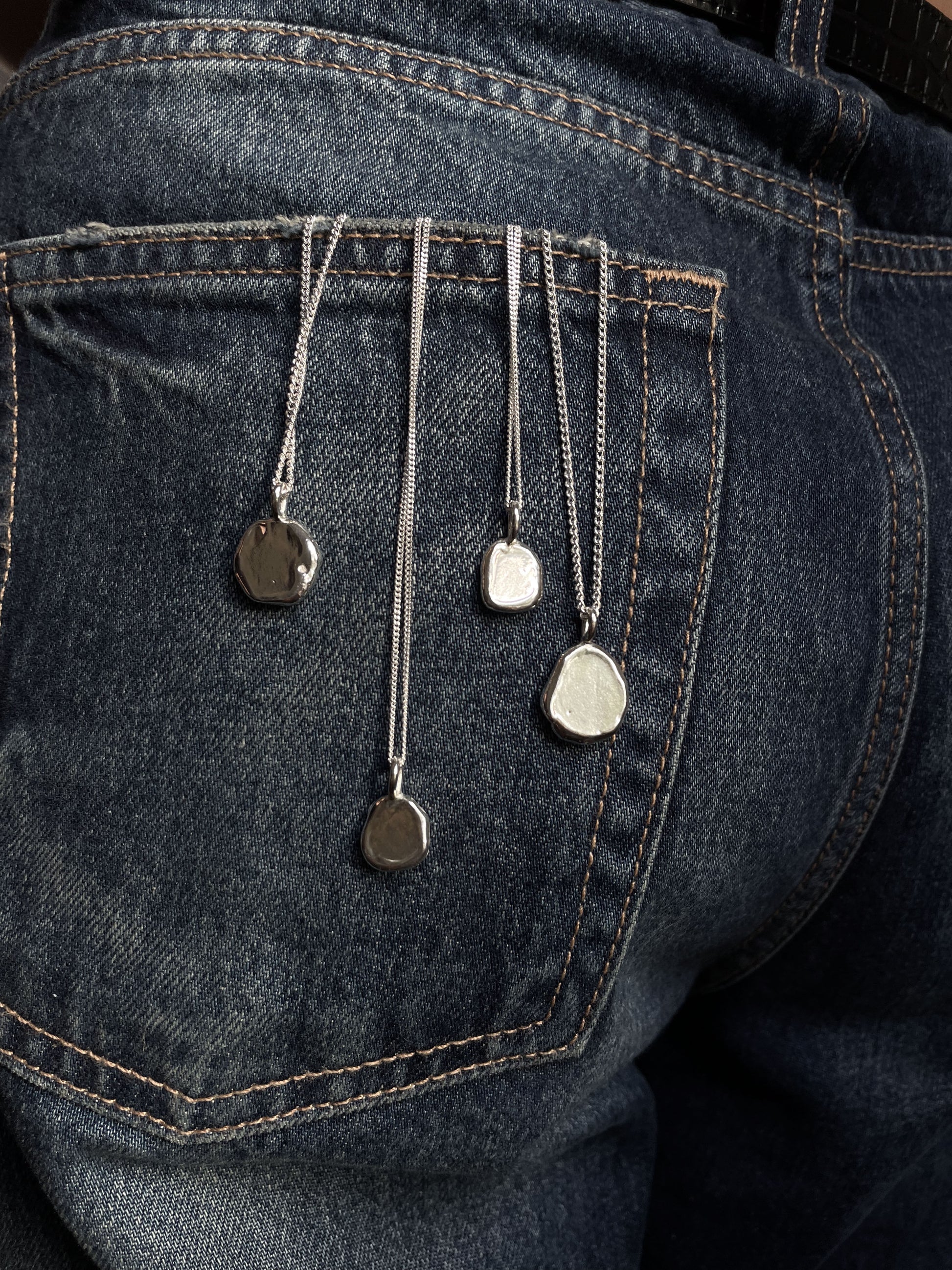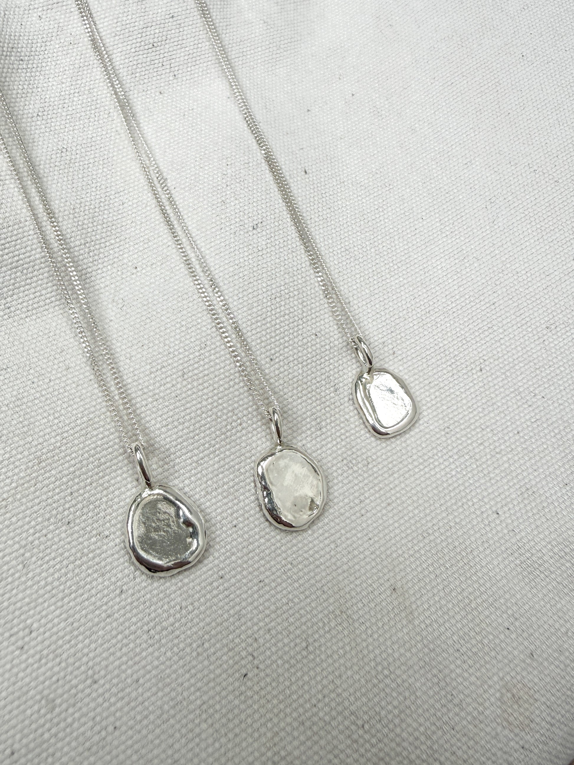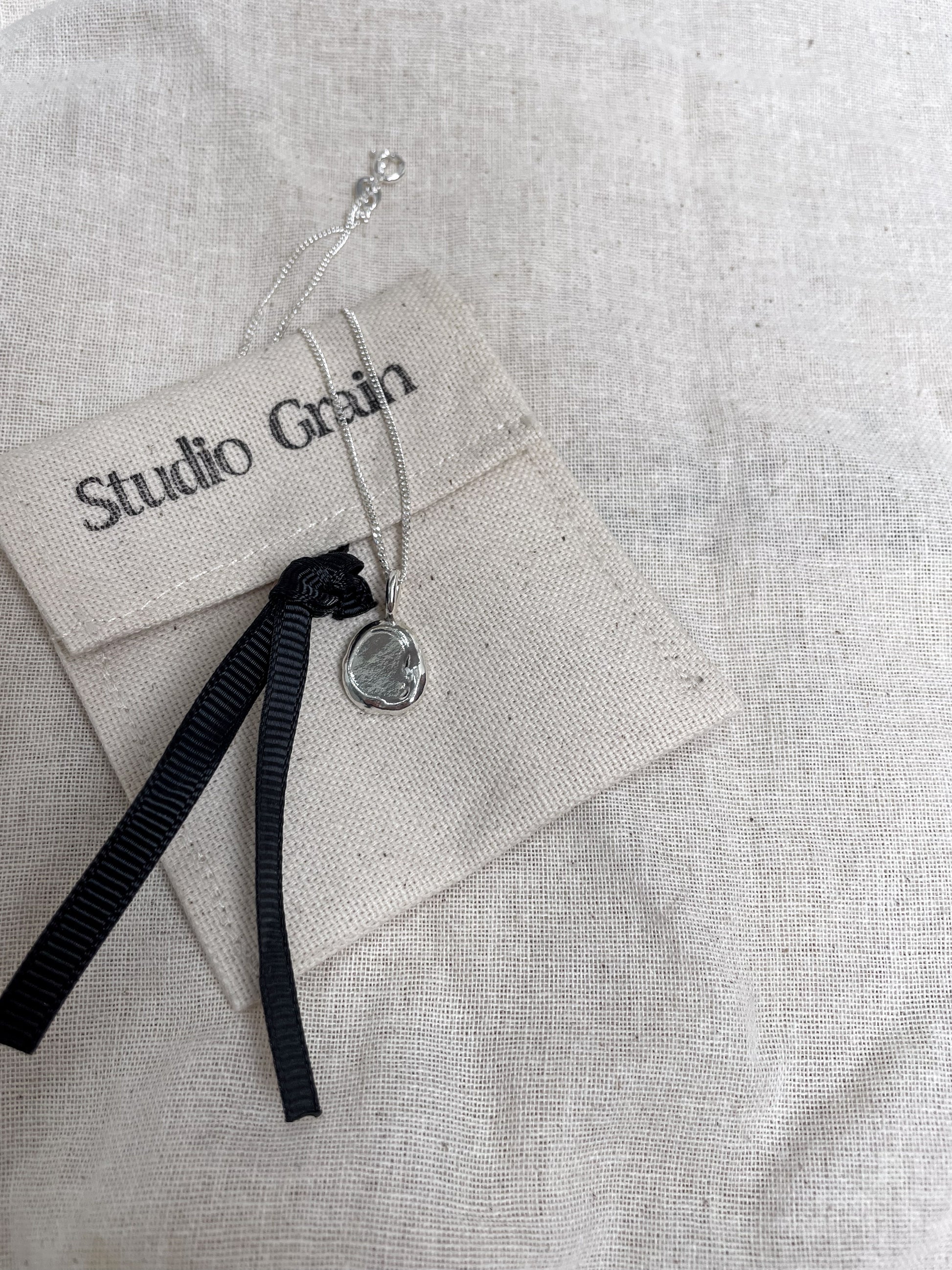 All Studio Grain jewellery is handcrafted in solid sterling silver and are made individually, so each piece is one-of-a-kind and unique to you. Please note that this means the pendant on your necklace may vary slightly in shape from the examples shown.